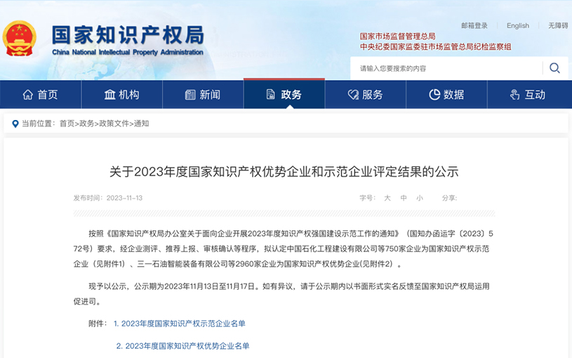 “国家知识产权优势企业和示范企业”是国家知识产权局授予企业的最高荣誉和评价,这一荣誉要求企业通过市、省、国家的层层审核,是对企业知识产权管理工作和创造、运用、保护、管理能力全面发展的认可。“国家知识产权优势企业和示范企业”的评定标准包括知识产权战略管理理念、知识产权全面发展能力、知识产权综合竞争优势、行业影响力和标杆性等方面。
